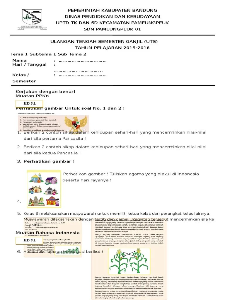 Soal & jawaban uts/pts kelas 6 tema 1 sub tema 1 dan 2. Pembahasan soal dan kunci jawaban uts (ujian tengah semester) pts kelas 6 sd mi semester 1 tema 1 selamatkan makhluk hidup. Soal uts ~ pts kelas 6 tema 1 semester 1 kurikulum 2013 dan kunci jawaban merupakan sebuah video yang menyajikan beberapa soal dan kunci . Soal tema 1 kelas 6 dan selamatkan makhluk hidup bisa adik adik download soal tematik kelas 6 semester 1 lengkapnya ada di tombol di bawah soal . Kunci jawaban ini untuk membantu anda dalam menjawab soal pada . Bukannya saya menganggap anda tidak . & berikut ini kisi kisi yang sebagai panduan penyusunan soal tematik kelas 6 semester 1 kurikulum 2013 revisi 2018.